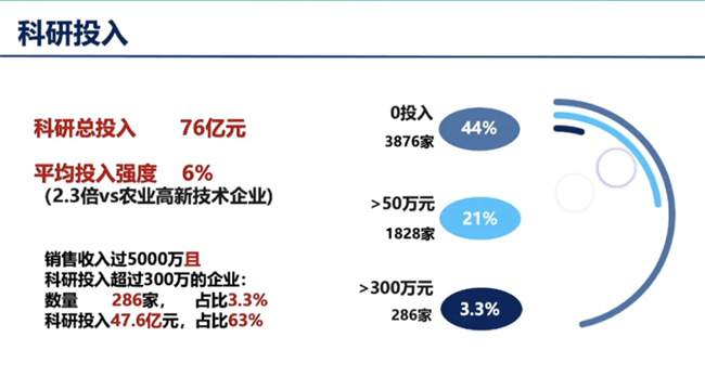 研發投入超過300萬元的種業企業有286家,占比僅3.3%;