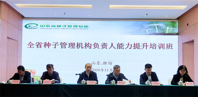 11月11日至15日,2024年全省種子管理機構負責人能力提升培訓班在濰坊舉辦。省農業農村廳二級巡視員蔣景春出席開班式并講話。