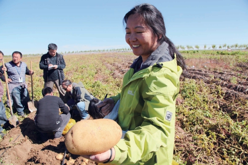 2016年,金黎平在張家口市察北管理區收獲加工專用新品種中薯10號。