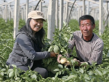 基地最終于2015年建成投用,金黎平高興,大家終于有了屬于自己的固定基地。“不用和其他作物混在一起,有效防止了病蟲害的相互傳播,田間管理也方便。而且面積夠大,每年種上300多畝,可以三年輪作。更重要的是,張家口就是馬鈴薯的主產區,育出來的新品種當地就可以用。”