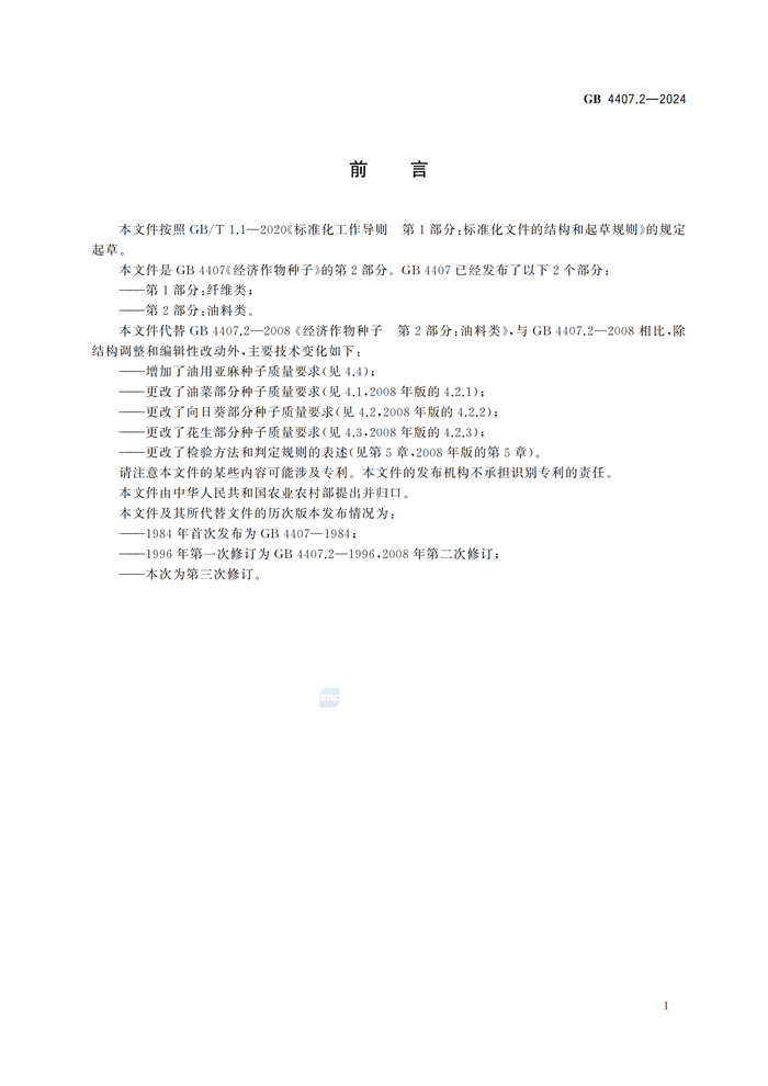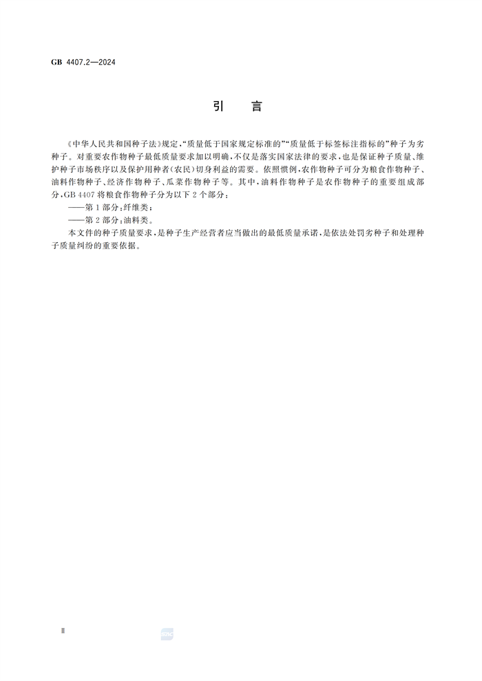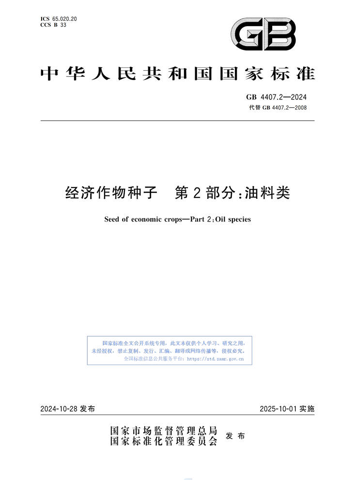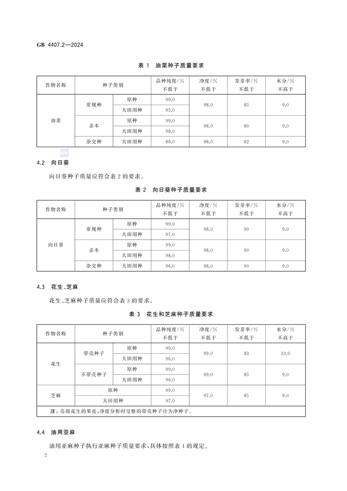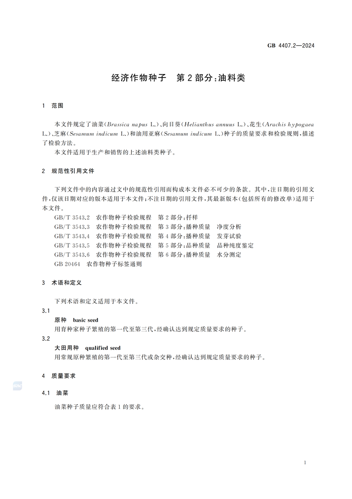 《經濟作物種子 第2部分:油料類》(GB4407.2-2024)