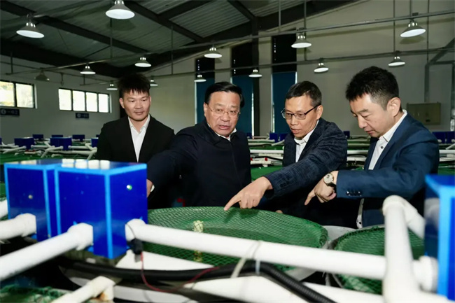 韓俊來到廣東海大集團股份有限公司,走進(jin)試驗(yan)車間了解魚類(lei)營養實驗(yan)情況,詢問(wen)各類(lei)飼料配(pei)方研發、成本(ben)效益等。韓俊(jun)指出(chu),要高(gao)度重視和(he)充(chong)分發揮農業(ye)(ye)(ye)“鏈主”企(qi)業(ye)(ye)(ye)在科技(ji)創新上的作用(yong),帶動農業(ye)(ye)(ye)產(chan)業(ye)(ye)(ye)節本(ben)增(zeng)效、提檔(dang)升(sheng)級。韓俊(jun)對企(qi)業(ye)(ye)(ye)開展低(di)(di)蛋白(bai)日糧技(ji)術研究非常關心,專(zhuan)門(men)了解企(qi)業(ye)(ye)(ye)飼用(yong)豆粕減量替代等情況。他(ta)強調,要充(chong)分挖掘各種(zhong)蛋白(bai)飼料資源,合理降低(di)(di)畜禽水(shui)產(chan)飼料豆粕使用(yong),持續(xu)促進(jin)畜禽養殖節糧降耗(hao)。