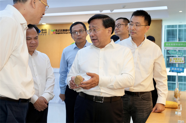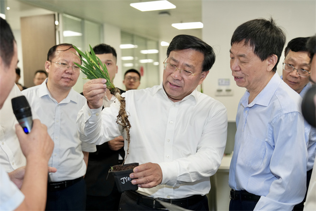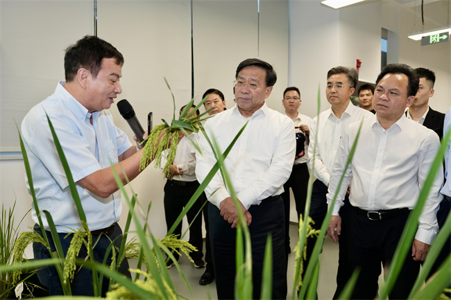 中種集團是全國首批育繁推一體化種業企業,近年來持續加強品種攻關,培育出耐鹽堿大豆、低鎘積累水稻等新品種。韓俊現場查看有關品種,了解集團創新發展及共建南繁硅谷情況,勉勵中種集團對標國際一流種業企業,培育推廣更多高產優質新品種。他強調,企業是種業創新的主體,要著力推進企業主導的產學研深度融合,大力培育種業領域科技領軍企業,支持企業承擔重大項目,深化科企協同創新,抓好科研成果轉化應用,加快構建商業化育種體系。