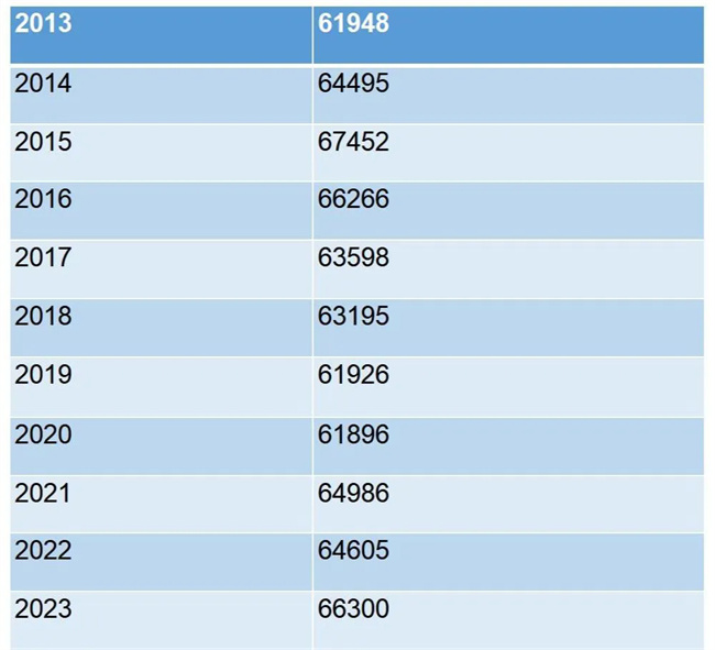據國家統計局統計,2023年,中國玉米種植面積達66328.35萬畝(約合6.63億畝),同比較2022年增加了2.67%;與2013年的61948.82萬畝相比,近10年間增加4379.53萬畝,增幅約7.07%,年均復合增長率約0.69%。