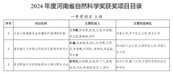 授予“大豆與根瘤菌共生結瘤的環境調控機制”等31項成果河南省自然科學獎,其中一等獎3項、二等獎17項,三等獎11項;