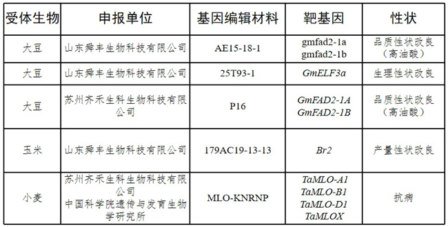 我國已下發5個基因編輯植物的安全證書,包括山東舜豐、齊禾生科和中國科學院的大豆、玉米、小麥,針對品質性狀、生理性狀和抗病性進行改良。