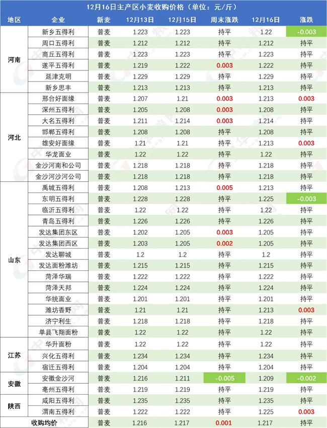 12月以來小麥市場承壓弱勢運行,最近小幅上漲沒有形成規模效應,主要是市場上新陳糧源供應充足,粉企按需謹慎采購,春節前小麥備貨需求一定程度上將支撐行情,但考慮到各方對供強需弱的基本面共識高度一致,價格小幅上漲將帶動拋售,反彈空間預期不大。而且玉米價格走低也抑制了小麥飼料替代,面粉加工的剛性需求意味著小麥彈性空間不大。