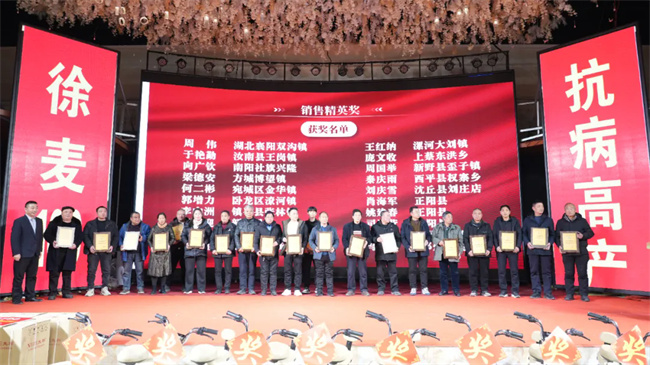 2024年,小麥種子市場是極為慘淡的一年,憑借徐麥100卓越的品質和各位合作伙伴的市場開拓能力,公司為在2024年銷售業績突出的經銷商,會議現場為他們舉行了隆重表彰儀式,以激勵更多的合作伙伴向榜樣學習,向先進靠攏。