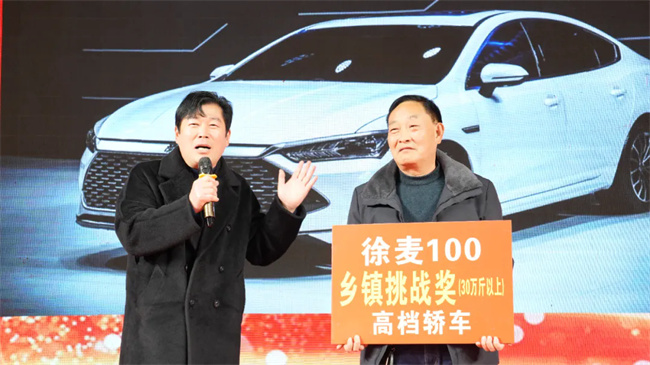 公司還特別設立鄉鎮挑戰獎,為鎮平縣馬莊鄉王新年挑戰30萬斤的銷量獎勵一輛高檔轎車。