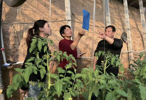 在山東省德州市臨邑縣寧寺村的蔬菜種植大棚里,一排排西紅柿長勢喜人,目前已陸續上市。農技專家與種植戶正在認真交流,了解當前西紅柿生長及產量情況,指導種植戶在低溫天氣下正確預防灰霉病的發生以及低溫天氣應對措施。