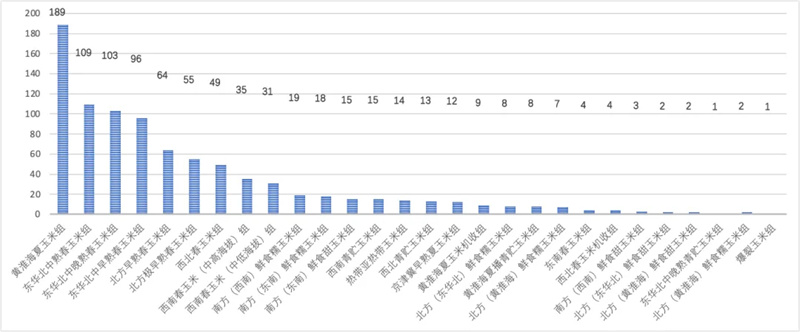 北方極早熟春玉米組3 個:壟翔 7389、鄭彭 966、鄭堯 793;北方早熟春玉米組6個:世圖 805、楨翔 81、內秀 53、鵬舉 381、嘉圖 183、鵬舉 382;東華北中早熟春玉米組1 個:?粒 92;西北春玉米組8 個:茭? 1716、ZY99、河豫 731、??彈 1 號、壟翔 985、慶鴻 018、央? 111、央? 113;東華北中熟春玉米組6 個:河豫 667、慶鴻 632、鷹揚 71、嘉圖 188、鄭堯 792、耀豫 566;東華北中晚熟春玉米組7 個:MY76、北適 133、禹堃 826、禹堃 828、彭創 001、MY73、央? 122;黃淮海夏玉米組10 個:茭? 1723、?華創 826、?華創 828、?華創 829、禮? 553、壟地翔 681、鳴? 271、育? 3806、悅良 660、悅良 777。