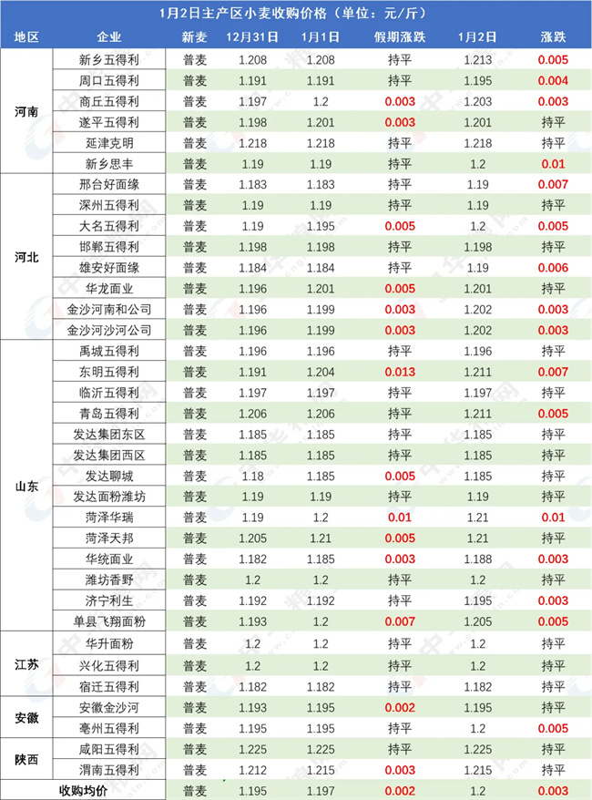 新年新氣象,進入2025年后,小麥一改12月份的頹廢疲弱行情,開啟一波轟轟烈烈上漲,并且上漲范圍和上漲幅度明顯擴大,個別廠家一天兩漲,東明五得利兩天漲1.6分,菏澤華瑞兩天漲2分(見圖1)。