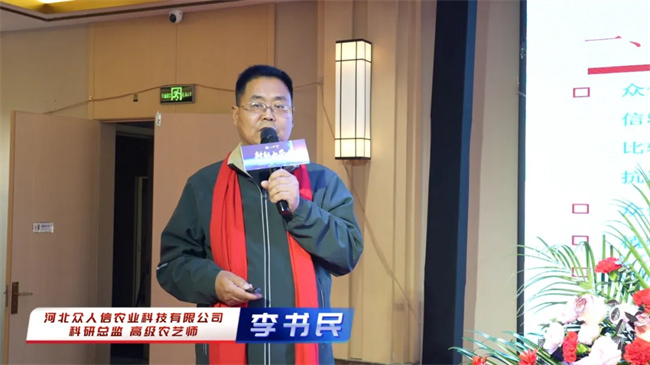 邯鄲市農業農村局副局長李洪濤在講話中表示,邯鄲市是全國重要的商品糧生產基地和糧食核心產區。糧食生產連續12年躋身全國百億斤糧食大市行列。2024年小麥收獲面積526.4萬畝,總產近50億斤,實現了三連增。河北眾人信農業科技有限責任公司作為集科研、繁育、推廣、服務為一體的實體型種業科技企業,在小麥生產上功不可沒。該公司是全國小麥繁育推一體化生產經營A證企業,全國小麥種業強優勢陣型企業,并榮獲全國張海銀種業促進獎。公司目前已培育出節水、高產、優質、強筋、彩色等廣適性好的小麥品種近百個,通過審定的小麥品種22個,其中國審10個(ge),省(sheng)(sheng)審12個(ge)。眾信(xin)麥(mai)998已被(bei)列為河北省(sheng)(sheng)2024年(nian)農業(ye)(ye)主導品(pin)種之一,作為主推(tui)品(pin)種,眾信(xin)麥(mai)998于(yu)2021年(nian)同(tong)時通過國(guo)(guo)家黃淮冬小麥(mai)北片(pian)了水地組和南片(pian)水地組雙(shuang)國(guo)(guo)審,可以在(zai)全(quan)國(guo)(guo)9個(ge)省(sheng)(sheng)推(tui)廣,2024年(nian)實現單一品(pin)種銷售破(po)億斤。希望借助各位領導、專家和各位來(lai)賓的力量,繼續支持眾人信(xin)農業(ye)(ye)種業(ye)(ye)創新和發展(zhan)(zhan)壯(zhuang)大(da),共同(tong)推(tui)動邯鄲農業(ye)(ye)高質(zhi)量發展(zhan)(zhan),促進農業(ye)(ye)農村事業(ye)(ye)興旺發達!