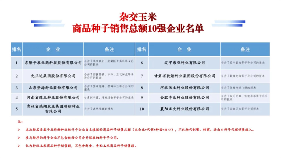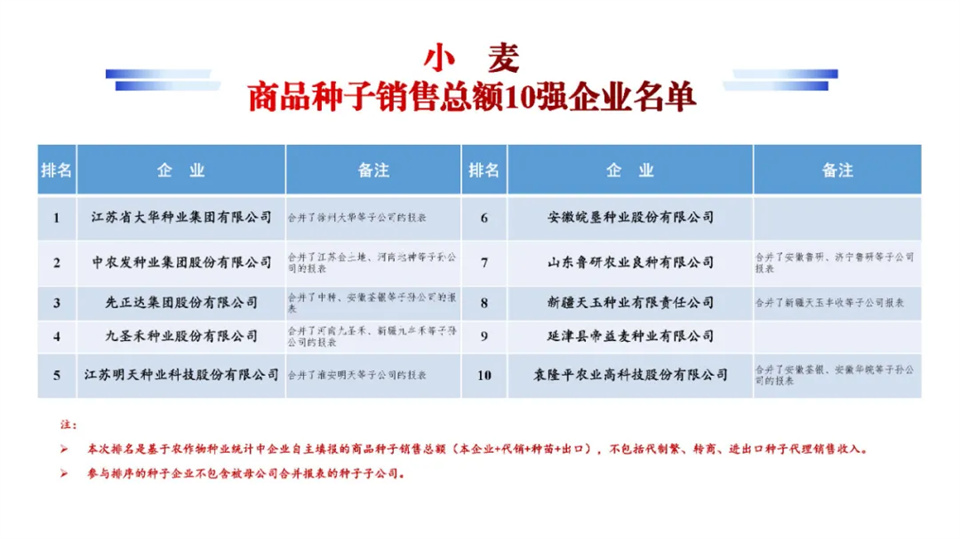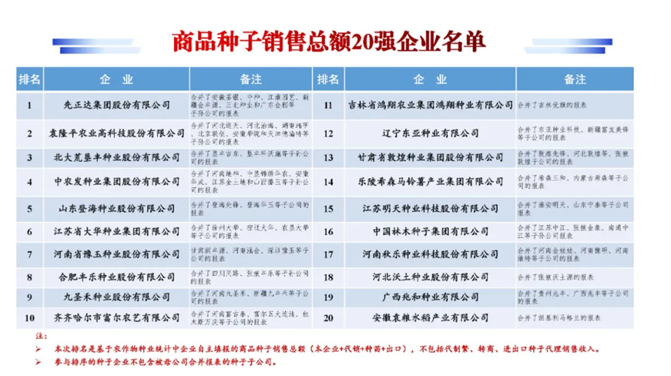 中國種企20強名單發布