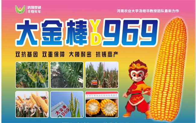 大金棒-YD969是由河南慧博科瑞迪農業科技有限公司聯合河南農業大學湯繼華教授團隊共同選育的豐產性突出、抗逆性強、綜合抗性好、耐密、廣適的玉米新品種。