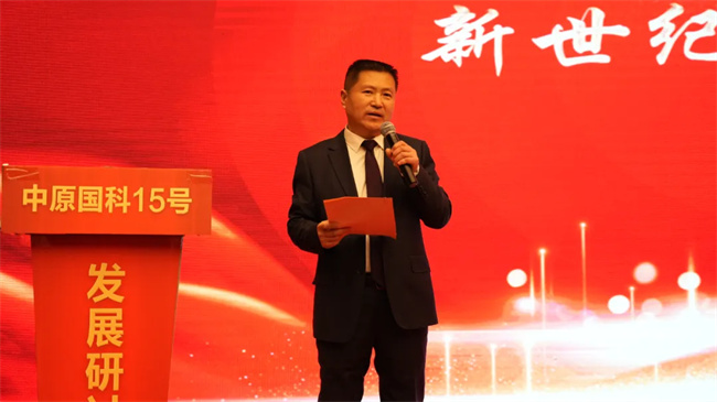新世紀種業總經理孫海濤在致辭中介紹,新世紀種業作為一家專業從事小麥新品種研發與推廣的高新技術企業,始終秉承專心、專注、專業的發展理念,服務小麥產業。經過公司育種團隊10余年的潛心培育的中原國科15號小麥種,凝聚著最新的科研成果,具有許多獨特的優勢,賣點大穗大粒,優質高產。2024年榮獲安徽省小麥新品種展示示范推廣。他表示,在當前種子競爭(zheng)激烈的(de)(de)市(shi)(shi)場(chang)環(huan)境下,擁(yong)有競爭(zheng)力(li)的(de)(de)新(xin)(xin)品種(zhong)就(jiu)等(deng)于有了新(xin)(xin)市(shi)(shi)場(chang),及(ji)提升(sheng)經濟效益的(de)(de)關鍵(jian)要(yao)素。中(zhong)原(yuan)國(guo)科15號(hao)這些(xie)優(you)(you)勢,必將(jiang)為(wei)經銷商(shang)朋友提升(sheng)市(shi)(shi)場(chang)競爭(zheng)力(li)帶來新(xin)(xin)的(de)(de)發展機遇(yu)。希望大(da)家以此次座(zuo)談交(jiao)流為(wei)契機,能夠深入了解(jie)中(zhong)原(yuan)國(guo)科15號(hao)小麥(mai)系統(tong)的(de)(de)特(te)性優(you)(you)勢以及(ji)市(shi)(shi)場(chang)潛(qian)力(li),也(ye)希望在(zai)今(jin)天的(de)(de)研討會上,各位嘉賓能夠暢所欲言,分享自己在(zai)小麥(mai)新(xin)(xin)品種(zhong)推廣(guang)中(zhong)的(de)(de)經驗、遇(yu)到(dao)的(de)(de)問題,共(gong)(gong)同(tong)(tong)探索(suo)新(xin)(xin)的(de)(de)市(shi)(shi)場(chang)機遇(yu),共(gong)(gong)同(tong)(tong)應對可能面(mian)臨的(de)(de)挑戰(zhan)。在(zai)未來的(de)(de)發展中(zhong),期待與大(da)家攜手共(gong)(gong)進,將(jiang)中(zhong)原(yuan)國(guo)科15號(hao)推廣(guang)到(dao)更廣(guang)闊(kuo)的(de)(de)市(shi)(shi)場(chang)。