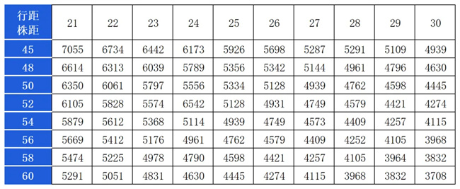 寬窄行方式首先計算出平均行距即可,播種質量和除草劑等造成的出苗損失較大時應適當縮小株距,不間苗。