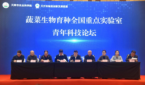 近日,蔬菜生物育種全國重點實驗室青年科技論壇在天津舉行。本次論壇由天開實驗室創新發展聯盟主辦,天津市農業科學院承辦。中國農業科學院蔬菜花卉研究所黨委副書記、所長張友軍,天津市農科院黨委副書記、院長金天明,北京市農林科學院副院長楊國航,天津市科技局實驗室工作處處長湯桂蘭,天津市農業農村委科教處處長孫志景出席開幕式并致辭,蔬菜生物育種全國重點實驗室副主任孫德嶺研究員主持開幕式。