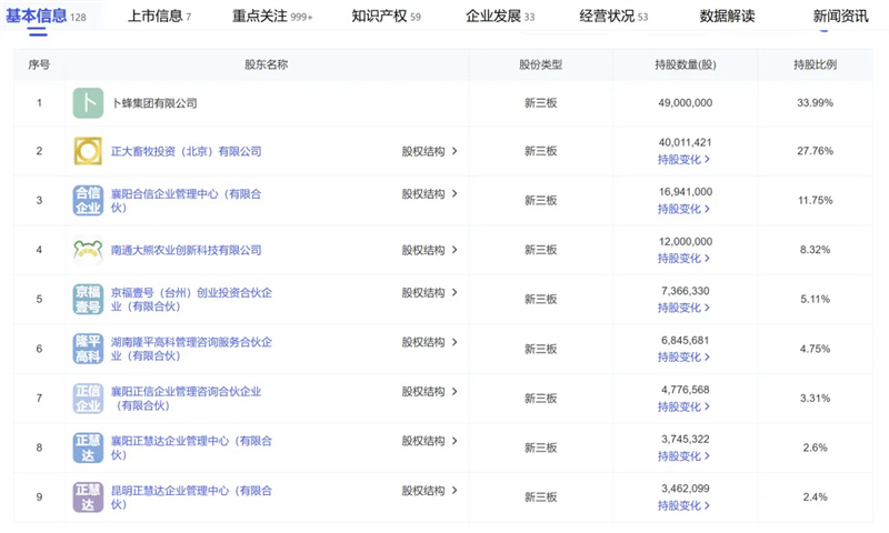 股東方面,卜蜂集團有限公司直接持有正大種業33.99%的股權,并通過全資子公司正大畜牧投資(北京)有限公司間接持有正大種業27.76%的股權,合計持有正大種業61.75%的股權。