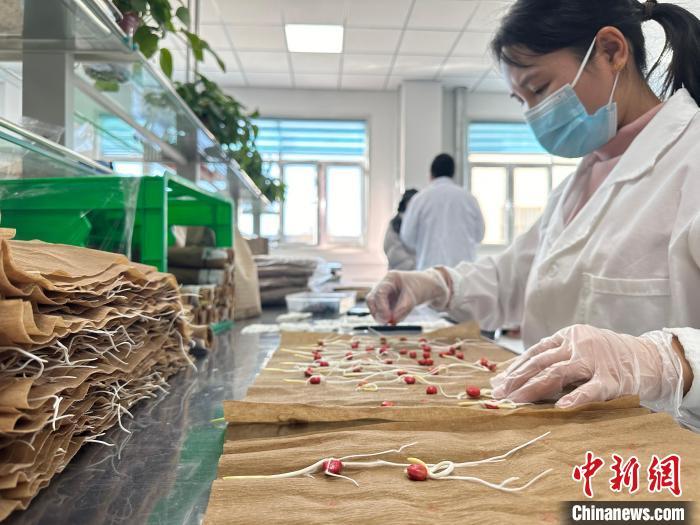 圖為張掖市臨澤縣一制種企業工作人員進行玉米種子的檢測。(資料圖)楊艷敏 攝