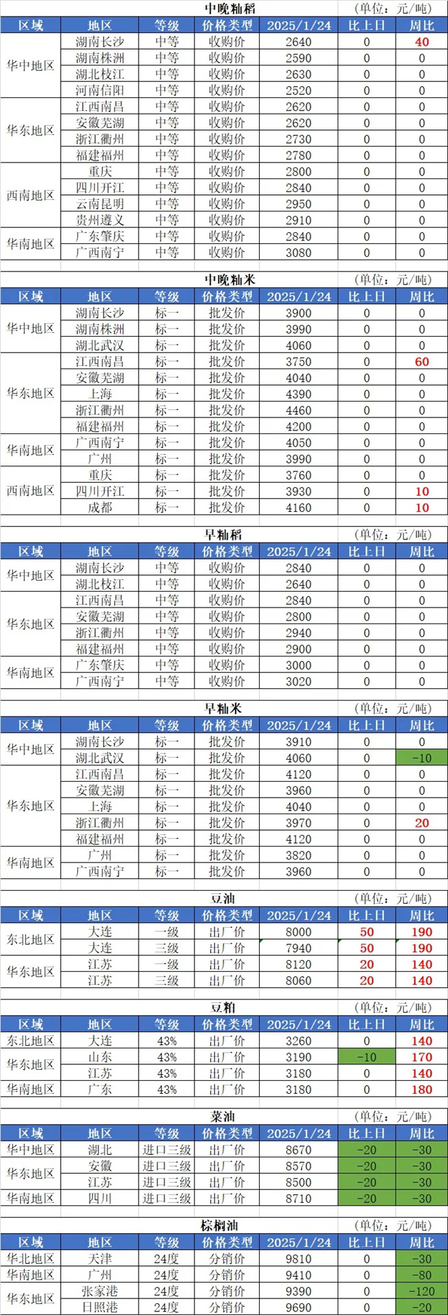 3、截至1月23日,安徽2024年累計收購中晚稻682萬噸,同比減少5%。其中,中晚秈稻累計收購585萬噸,粳稻累計收購97萬噸。