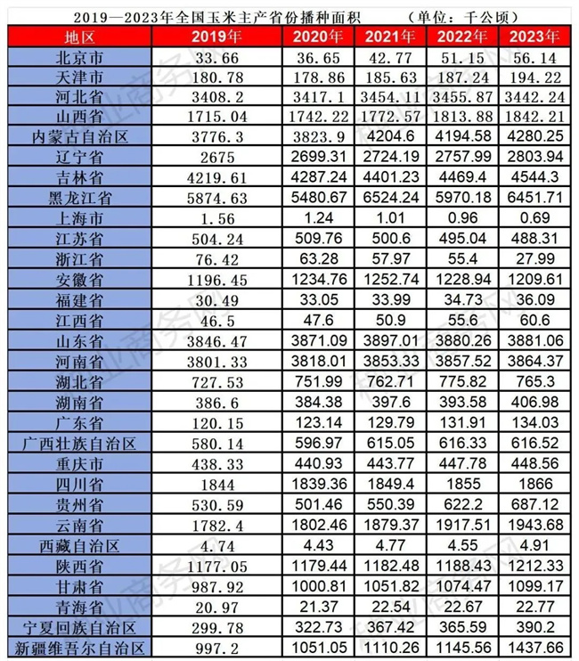 玉米是我國播種面積第一大糧食作物,在全國廣泛種植,按照氣候條件和地理分布,可分為五個玉米種植區,分別是北方春玉米區,以東北三省、內蒙古為主;黃淮海夏玉米區,以河北、山東、河南為主;西南山地玉米區,以四川、廣西、云南和貴州為主;西北灌溉玉米區,主要包括新疆和甘肅;以及南方丘陵玉米區等。