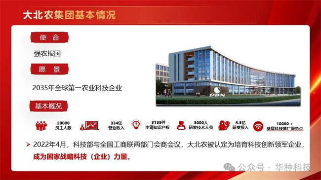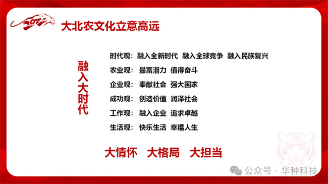 大北農企業文化是華種科技發展的精神燈塔,“強農報國、爭創第一、共同發展”的核心理念貫穿于企業發展的每一個脈絡。在這種文化的激勵下,全體員工緊密團結,以推動農業現代化進程、助力農民增收致富為使命,全身心投入到種業技術創新與服務優化中,為實現農業強國的宏偉目標添磚加瓦。