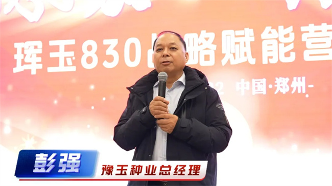 會議伊始,豫玉種業總經理彭強在致詞中分析當前種業形勢,介紹了公司為應對市場變化而采取的發展戰略。彭總表示,琿玉830大棒高產封頂好,還具備抗旱抗倒抗銹病等諸多優勢,進入生產應用以來,受到市場普遍歡迎,希望大家精心打造閉環的營銷推廣方案,緊抓市場關鍵節點,實施差異化營銷,深挖品種優勢,做大做強市場。彭總指出,一直以來,公司緊圍市場需求,不僅為合作伙伴提供優良品種,更在組建團隊、完善渠道、優化方案等方面下足功夫,助力一大批合作伙伴成為當地市場的佼佼者。為維護市場秩序和雙方利益持續穩定發展,彭總從品種拓展、工作態度、市場規則和市場管控等對各位經銷商提出四點要求。