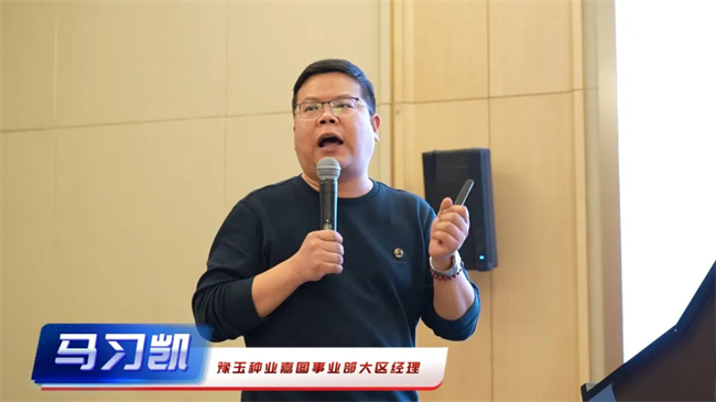 嘉圖事業部總監、琿玉830運營負責人秦威詳細介紹了琿玉830的獨特優勢與卓越品質:苗齊苗壯,耐旱能力強,抗高溫結實好,綜合抗性強,尤其是抗莖腐和抗銹突出,品質優,通過一系列詳實的數據和生動的案例,讓合作伙伴們對琿玉830有了更深入的了解。在營銷策略分享環節,經驗豐富的秦總針對黃淮海地區的市場特點,深入淺出地講解了一系列切實可行的營銷策略,為合作伙伴營銷工作指明了方向。
