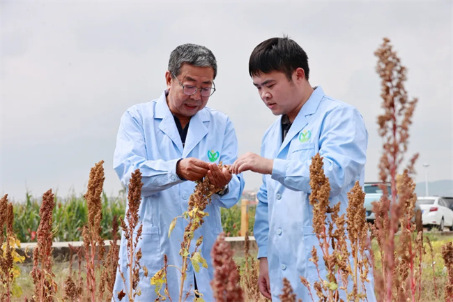 江蘇省淮安市農科院的科技工作者正在查看成熟后的“太空糧食”藜麥。