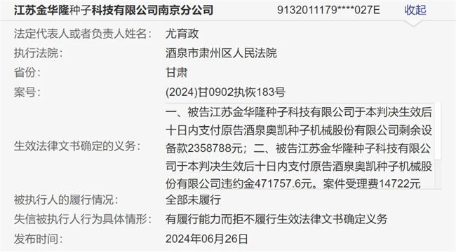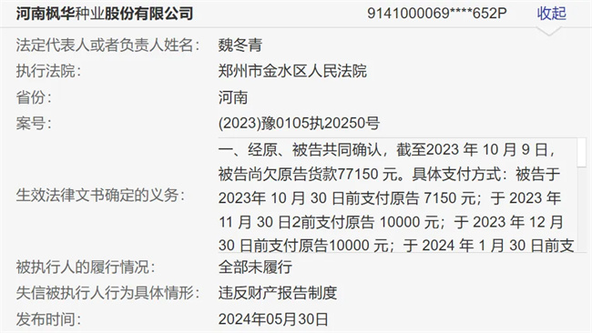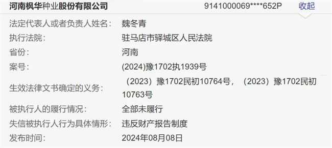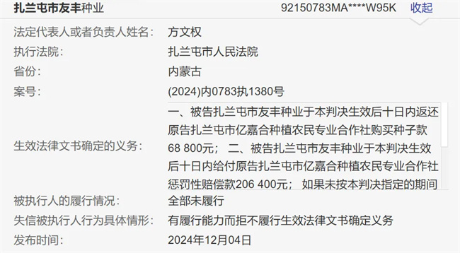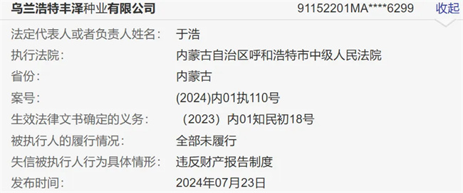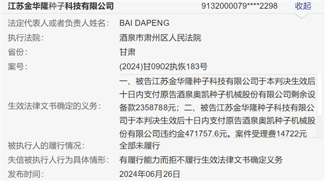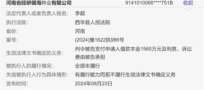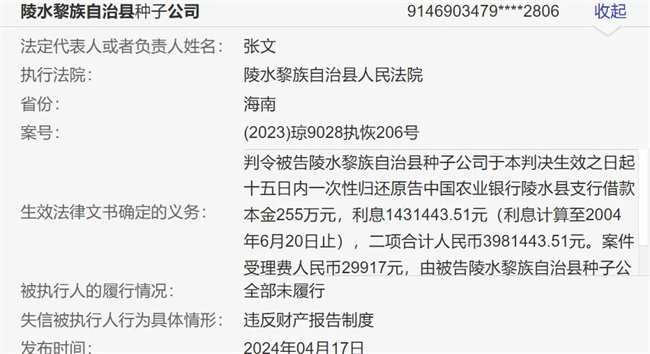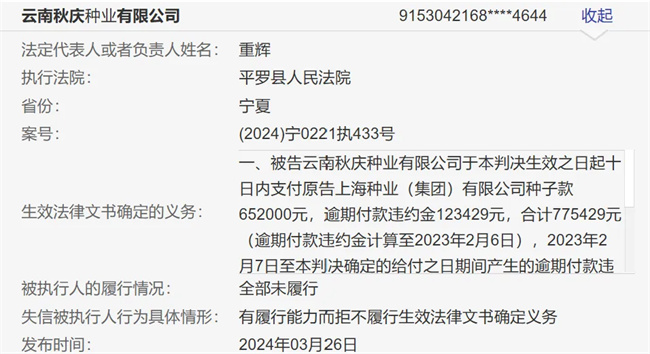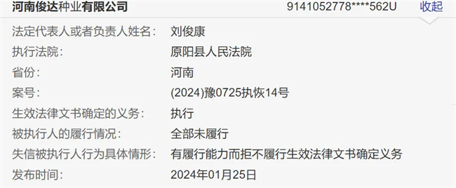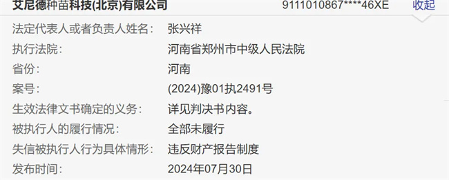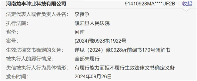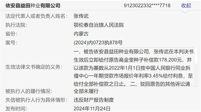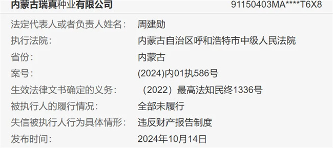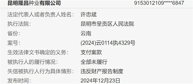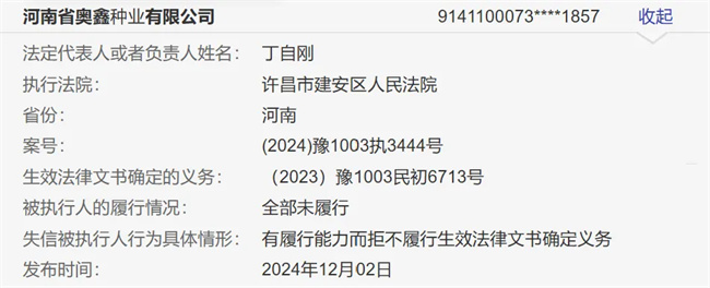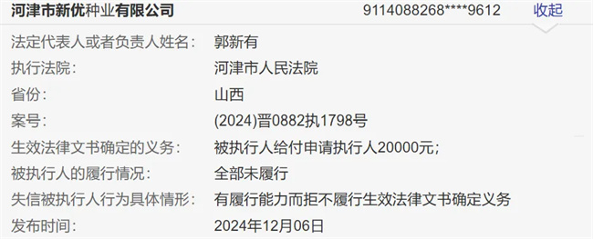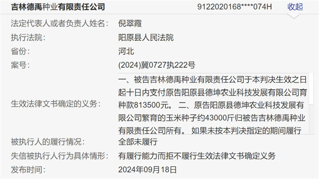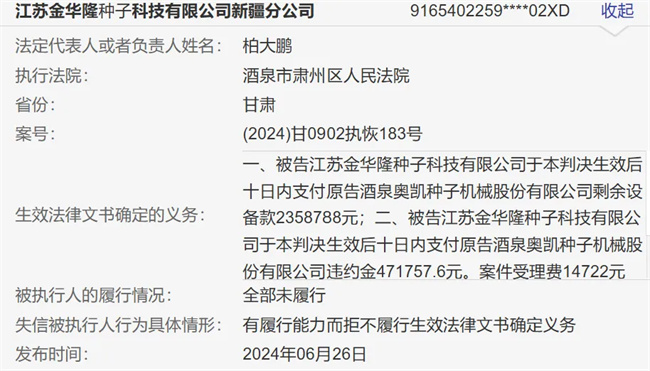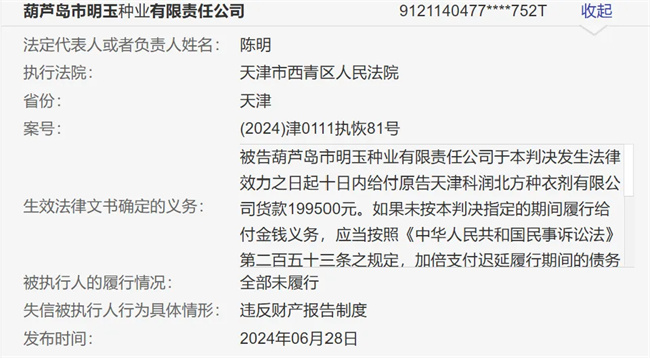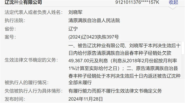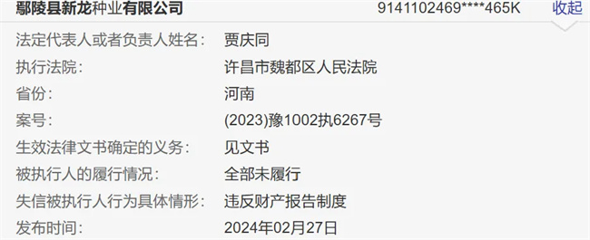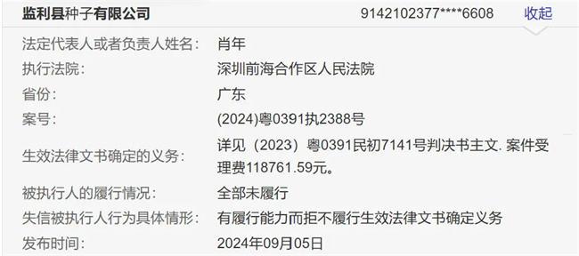 近日,農財君在全國失信被執行人名單查詢頁面上,以“種業”“種子”“種苗”為三個關鍵詞,查詢到2024年來失信的種業企業名單,共98家(不完全統計)。
