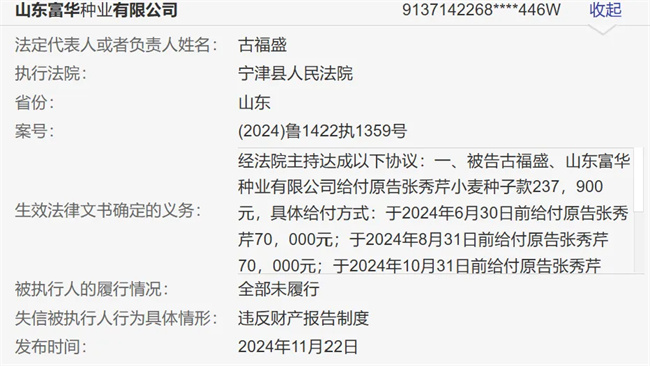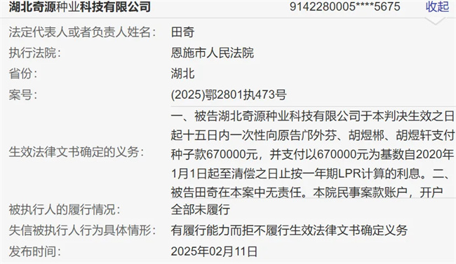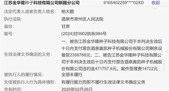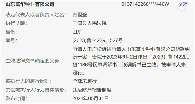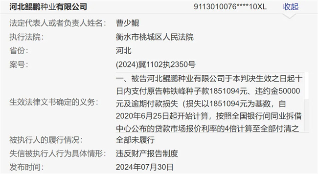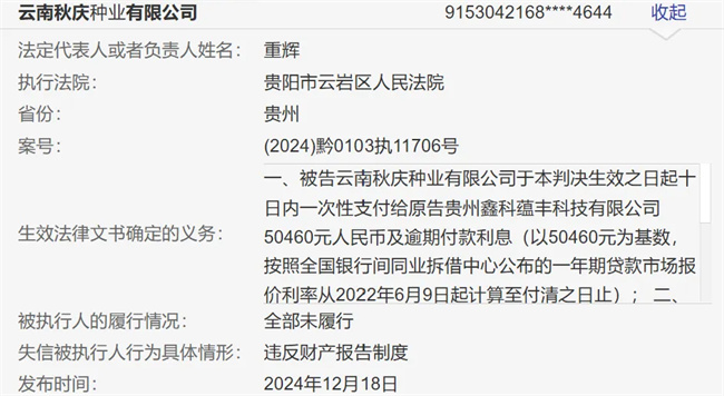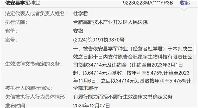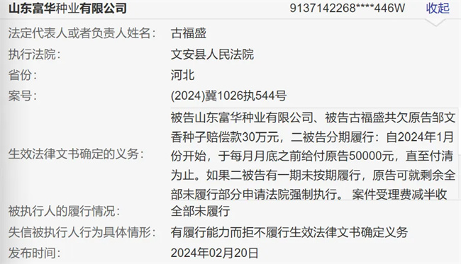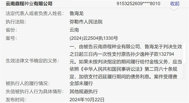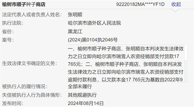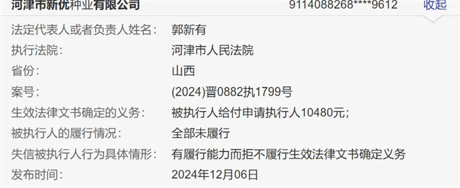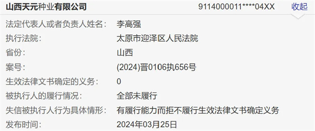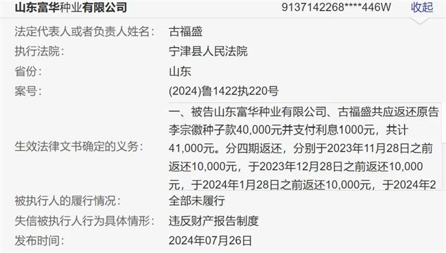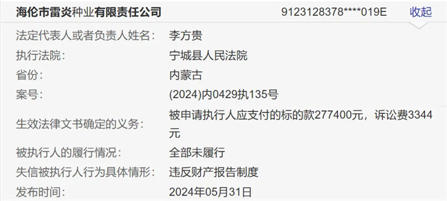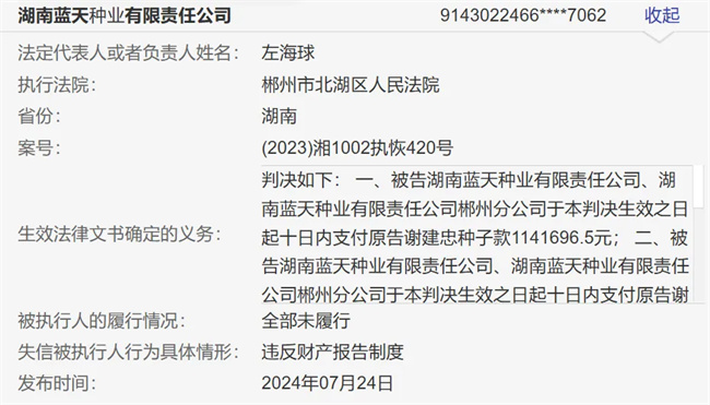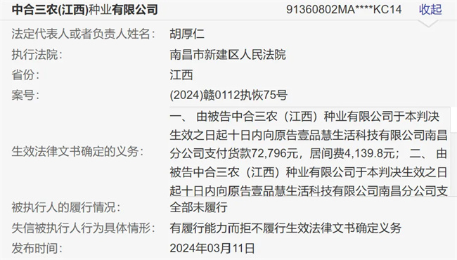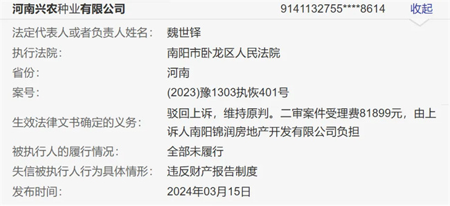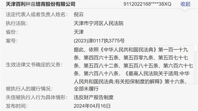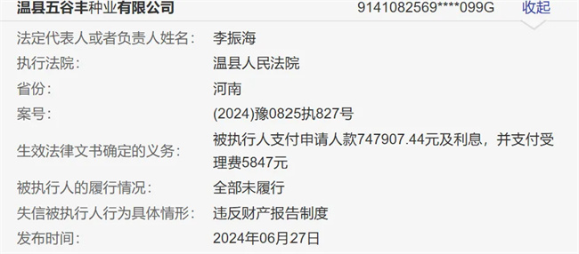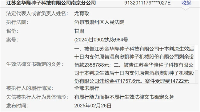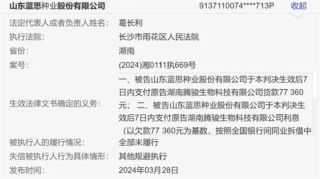 近日,農財君在全國失信被執行人名單查詢頁面上,以“種業”“種子”“種苗”為三個關鍵詞,查詢到2024年來失信的種業企業名單,共98家(不完全統計)。