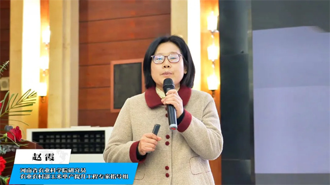 會議邀請河南省農業科學院、國家農業農村部玉米單產提升工程指導組專家趙霞研究員做玉米單產提升賦能報告。報告中提出了玉米單產提升“一二五”理論,即一個目標、兩條路徑、五條關鍵措施,圍繞提升玉米單產,實行增加密度和精準調控,實施好種提密、精播滴水、適時化控、全程綜防、機械晚收等進行培訓。趙霞研究員指出,玉米單產提升需結合高效育種技術與科學種植模式,而偉科812的品種特性及推廣模式正契合這一目標。希望在座的各位經銷商朋友,在推廣偉科812優良品種的同時,加強技術服務引導,賦予品種更多的高產高效栽培技術,挖掘優良品種潛力,助力糧食單產提升,為農民增產、農業增效做出更大貢獻!