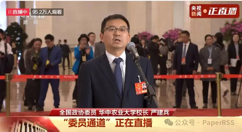 3 月 4 日下午,2025 年全國兩會(hui)首(shou)場 “委(wei)員通(tong)道” 開啟,來自湖北的全國政協委(wei)員、華中農業大(da)學校長(chang)嚴建兵第一(yi)個走(zou)上(shang)通(tong)道接受采訪(fang)。