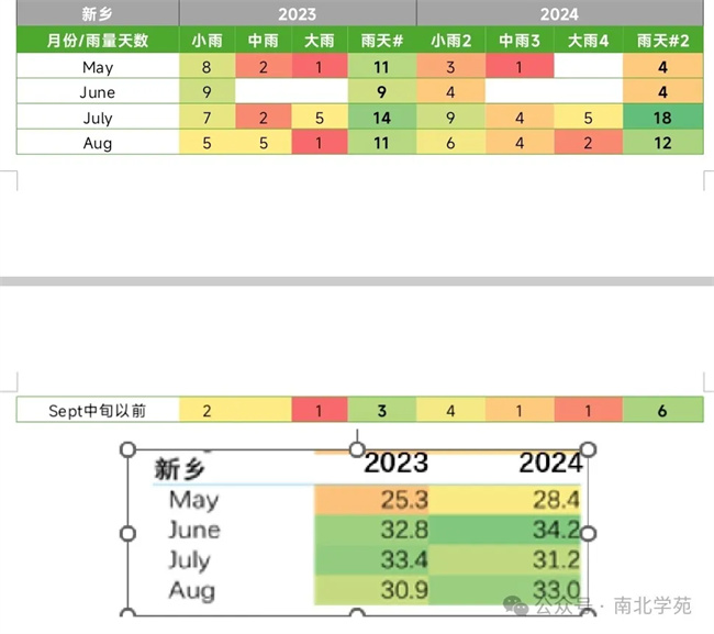 下表為新鄉5-9月中旬份下雨天數與平均最高溫度統計