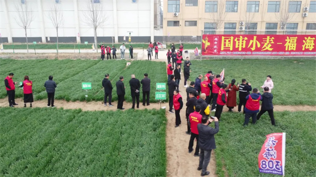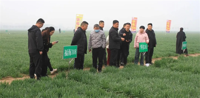 會前,參會人員實地觀摩了華偉305等小麥品種的種植情況。福海農業技術人員詳細介紹了華偉305品種的特征特性以及單產提升栽培技術,使參會人員對該品種有了直觀且深入的了解,為后續的推廣工作奠定了堅實基礎。