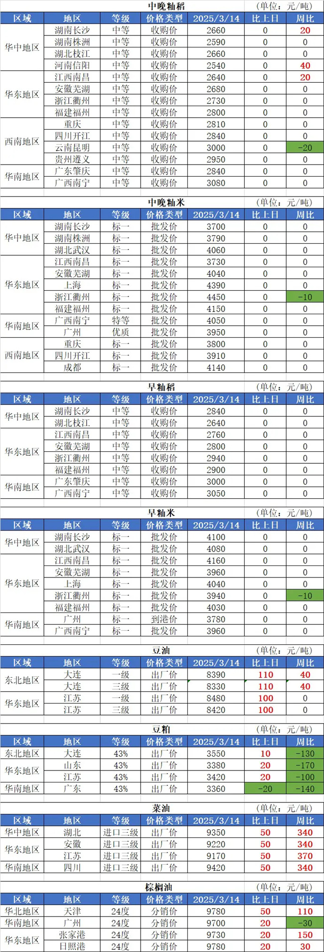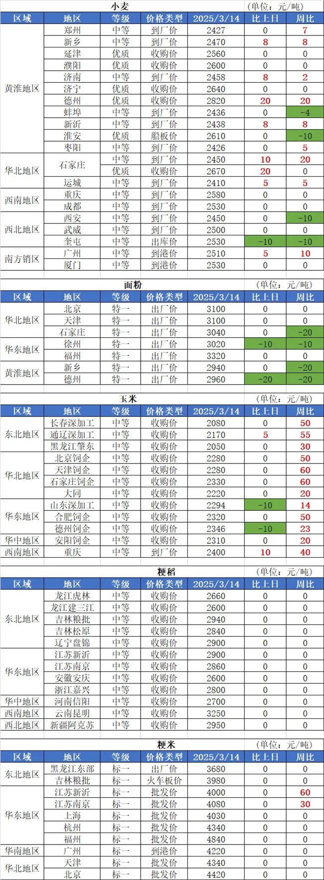 2、3月14日,部分深加工企業調整玉米收購報價,其中山東壽光金玉米收2294元/噸,較昨日下跌10元/噸;山東保齡寶玉米掛牌價2280元/噸,較昨日下跌10元/噸;黑龍江綏化昊天玉米干糧收2065元/噸,較昨日漲20元/噸。