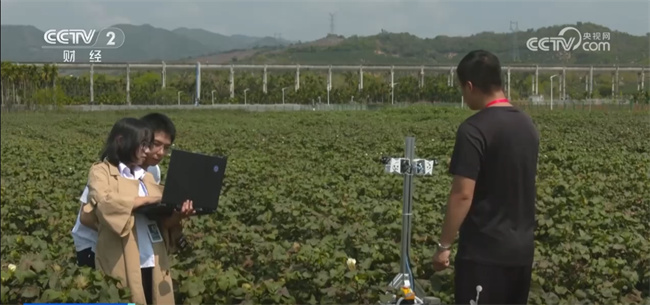 這個正在棉花地里工作的機器人是中國農科院南繁研究院科研團隊的“新伙伴”。它身上配備了6個攝像頭,能多角度、精準地捕捉棉花的株高、莖粗、病害等關鍵表型特征。農業專家介紹,這個機器人主要是用AI大模型算法,進行針對棉花全生育周期的表型數據進行采集,然后在所連接服務器后臺進行分析,目前效果、準確度完全可以符合需求。
