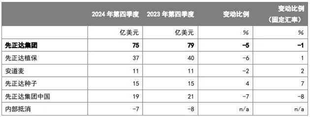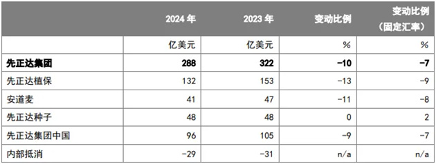 先正達植保全年營業收入為 132 億美元,同比下降 13%(按固定匯率計算下降 9%)。