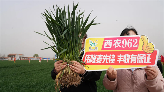 中國種子協會小麥分會副會長、陜西省第十三屆政協委員會委員、河南偉隆種業有限公司董事長徐永林強調,公司將依托強大的科研后盾,配套完善的高產栽培技術體系,全面賦能西農962市場,助力農民增收、農業增效,為合作伙伴開拓市場和提高市場競爭力提供全力支持。