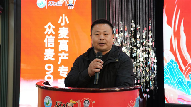 邢臺雙正種業有限公司總經理段正斌在發言中介紹,眾信麥998:稈低、抗倒性好,穗大粒多、產量高,抗寒性突出,綜合抗性好、活桿成熟落黃好,跨越三個生態區穩定性好。公司還為種植戶提供全程技術服務指導,助力農戶增產增收,深受市場歡迎。公司將繼續深化與眾人信合作,爭取2025年眾信麥998銷量再上新臺階。