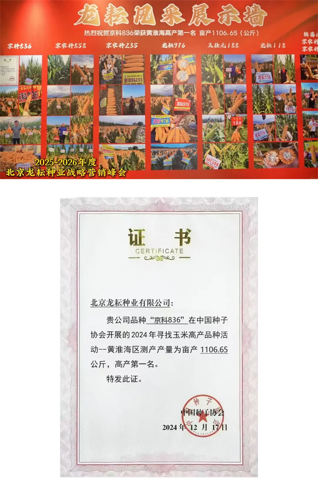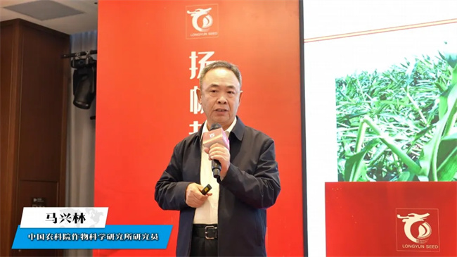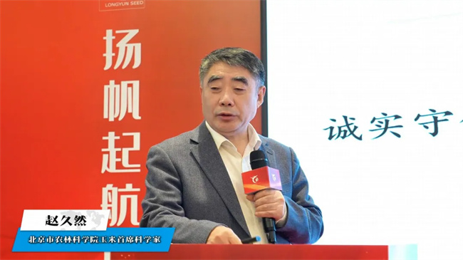 在專家分享環節,北京市農林科學院玉米首席科學家趙久然研究員,圍繞黃淮海夏玉米區的氣候與逆境特點,深入分析了如何創新雜優模式、育種方法、核心種質等關鍵問題。他指出,京科836是新一代X系聚合種質與黃改組配而成的優秀品種,具備“高產優質、多抗廣適、易制種”的綜合優良性狀,還具有早熟宜機收、耐密植、抗倒伏、耐高溫、結實好、抗銹出色、品質優良等諸多優勢,更具市場競爭力。趙久然研究員表示,北京市農林科學院將繼續加強與龍耘種業的合作,推出更多優質品種,更好地服務經銷商與農民,為種業發展注入新動力。