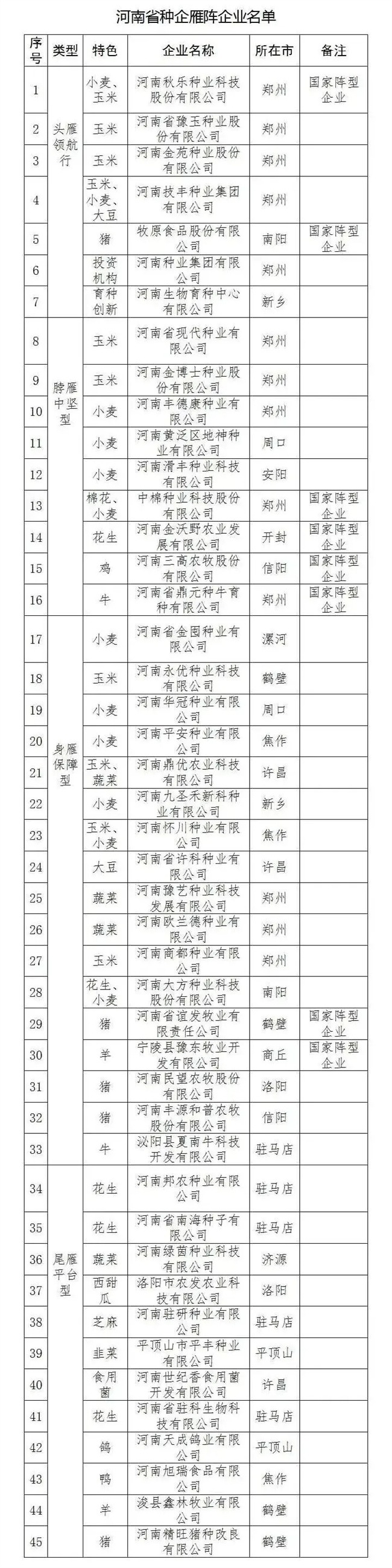 2024年10月,河南省農業農村廳發布關于擬定河南省種企雁陣企業名單的公示,遴選河南秋樂種業科技股份有限公司、牧原食品股份有限公司等45家企業為河南省種企雁陣企業。