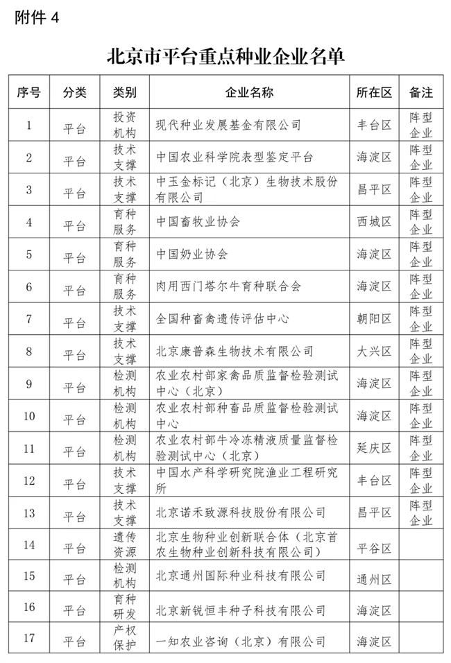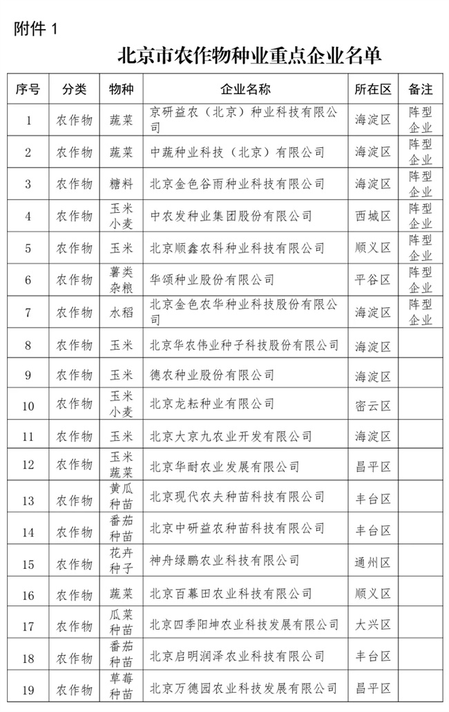 2024年9月,北京市農業農村局發布關于扶持北京市種業重點企業發展的通知,組織遴選58家北京市種業重點企業。