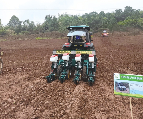4月初,農業農村部農業機械化總站會同全國農業技術推廣服務中心、四川省農業農村廳,在四川省仁壽縣舉辦大豆玉米復合種植裝備研討交流會暨丘陵山區凈作玉米大豆機械化播種以及復合種植全程機械化現場演示。此次會議齊聚全國18個大豆玉米帶狀復合種植重點省份農技、農機推廣機構代表,以及有關科研單位代表,共同探討機藝融合,加快復合種植及丘陵山區機具熟化完善和推廣應用,推進糧油作物大面積提單產。