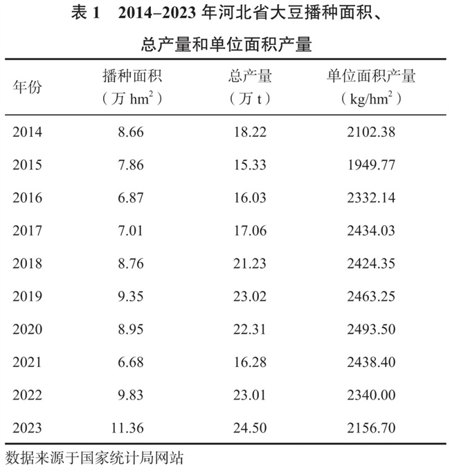 大豆起源于(yu)中國(guo)(guo)(guo)(guo),是我國(guo)(guo)(guo)(guo)重(zhong)要的(de)(de)(de)糧食和(he)油(you)料作(zuo)物(wu),在國(guo)(guo)(guo)(guo)民(min)(min)社會生(sheng)活(huo)、農業種植結構(gou)、食品及加(jia)工行業等方面具(ju)有重(zhong)要作(zuo)用。隨著(zhu)經濟的(de)(de)(de)發(fa)展和(he)人民(min)(min)生(sheng)活(huo)水(shui)平的(de)(de)(de)提(ti)(ti)高(gao)(gao),我國(guo)(guo)(guo)(guo)大(da)(da)(da)豆需求量(liang)(liang)持續(xu)增(zeng)長,2023年(nian)我國(guo)(guo)(guo)(guo)大(da)(da)(da)豆消(xiao)(xiao)費量(liang)(liang)約(yue)為(wei)1.15億t,占全球消(xiao)(xiao)費總量(liang)(liang)的(de)(de)(de)1/3,同年(nian)我國(guo)(guo)(guo)(guo)大(da)(da)(da)豆進口數量(liang)(liang)為(wei)9941萬t,而(er)國(guo)(guo)(guo)(guo)內大(da)(da)(da)豆總產(chan)(chan)量(liang)(liang)才2084萬t,對外依存度高(gao)(gao)達82.7%,國(guo)(guo)(guo)(guo)產(chan)(chan)大(da)(da)(da)豆產(chan)(chan)能難以滿足國(guo)(guo)(guo)(guo)人需求,每年(nian)需要大(da)(da)(da)量(liang)(liang)進口。由于(yu)沒(mei)有掌握大(da)(da)(da)豆定價權,隨著(zhu)大(da)(da)(da)豆凈進口的(de)(de)(de)不斷(duan)(duan)增(zeng)加(jia),國(guo)(guo)(guo)(guo)際市場對國(guo)(guo)(guo)(guo)內大(da)(da)(da)豆產(chan)(chan)業的(de)(de)(de)影(ying)響不斷(duan)(duan)加(jia)深。因此,為(wei)保障(zhang)我國(guo)(guo)(guo)(guo)糧食安全,提(ti)(ti)高(gao)(gao)大(da)(da)(da)豆產(chan)(chan)量(liang)(liang)具(ju)有緊迫性和(he)必要性。2024年(nian)中央一(yi)號文件提(ti)(ti)出,實施(shi)糧食單產(chan)(chan)提(ti)(ti)升工程,鞏(gong)固大(da)(da)(da)豆擴種成果(guo),支持發(fa)展高(gao)(gao)油(you)高(gao)(gao)產(chan)(chan)品種,繼續(xu)實施(shi)大(da)(da)(da)豆生(sheng)產(chan)(chan)者補貼政策。河北省(sheng)作(zuo)為(wei)黃淮海夏播(bo)區域(yu)大(da)(da)(da)豆主產(chan)(chan)省(sheng)之一(yi),其大(da)(da)(da)豆產(chan)(chan)量(liang)(liang)的(de)(de)(de)提(ti)(ti)高(gao)(gao)對于(yu)我國(guo)(guo)(guo)(guo)拎(lin)穩(wen)“油(you)瓶子(zi)”具(ju)有十(shi)分重(zhong)要的(de)(de)(de)作(zuo)用。