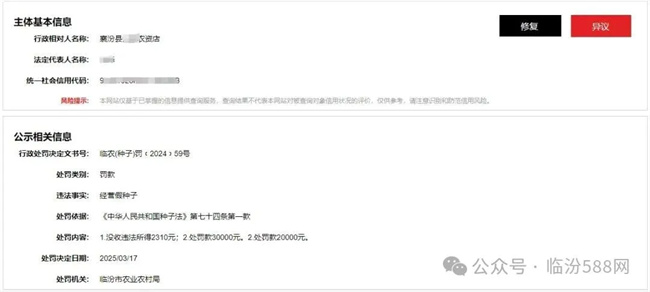 福州市羅源縣某鎮一農資經營部經銷的水稻種子,經檢測水分實測值不合格,被責令停止經營該批次水稻種子,并處罰款1萬元的行政處罰。