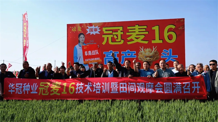 大會伊始,參會嘉賓前往華冠種業小麥展示基地進行觀摩。現場展示的小麥品種令人矚目:冠麥2號作為河南省農業主導品種,河南省重大品種研發推廣應用一體化項目,以其高產穩產、綜合抗性強等優勢,連續多年在黃淮麥區表現突出;2024年通過國家審定的冠麥10號(國審麥20241020),憑借高產與抗逆性強等特性,迅速獲得市場認可,更榮膺“2024年國家核心展示綜合表現優良品種”稱號;同樣于2024年通過國審的冠麥16(國審麥20241021),則憑借高產、抗倒伏及適應性廣的特點,成為黃淮麥區經銷商們爭相認可的熱門品種。這些優異品種的集中展示,充分彰顯了華冠種業在小麥育種領域的強大實力與卓越成果。