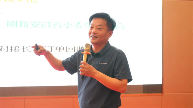 會議期間,一系列精彩的學術報告和經驗分享更是將活動推向高潮。安徽農業大學農學院院長、安徽省小麥產業體系首席專家李金才教授,以《優質強筋小麥高產栽培技術》為題,深入講解了優質強筋小麥的生長特性、高產栽培的關鍵技術要點以及田間管理的注意事項,幫助掌握了更加科學、精準的種植方法,為其在實際生產中實現高產優質提供了強有力的理論支持。