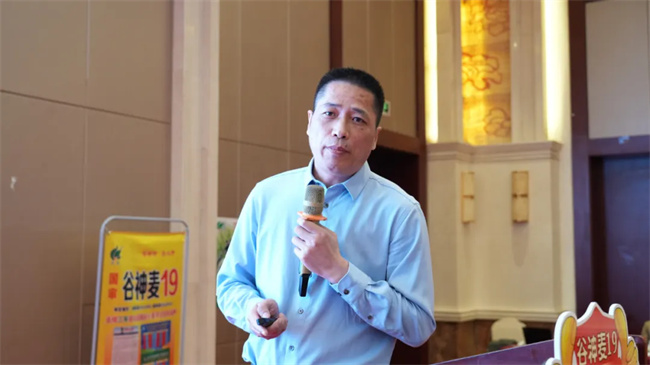 渦陽縣農業農村局黨組成員、亳州市農科院院長馬振秀在會上致歡迎詞,對與會嘉賓表示熱烈歡迎,并強調了高產強筋麥—谷神麥19對于農業高質量發展與助力鄉村振興具有重要意義。谷神種業董事長王軍詳細匯報了谷神麥19的推廣發展規劃,從品種繁育、種植技術推廣到市場拓展等方面,全面闡述了未來的發展方向,為谷神麥19的進一步推廣描繪了宏偉藍圖。